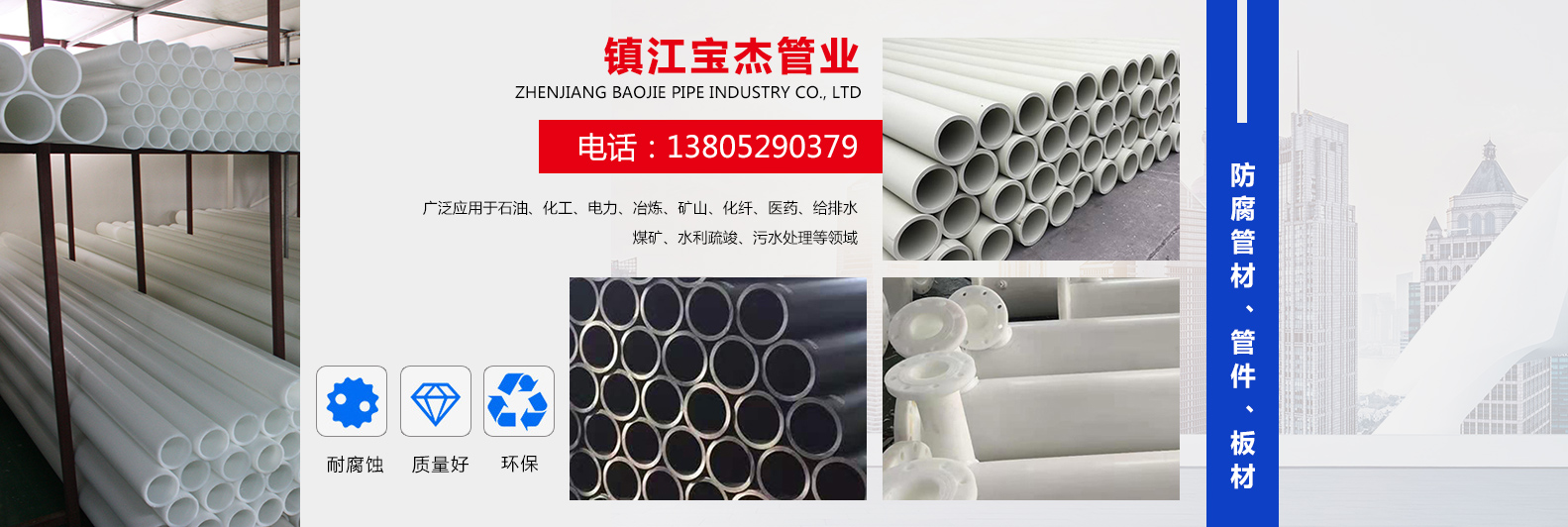 鎮江寶杰管業有限公司是生產防腐管材、管件、板材的專業化企業。
